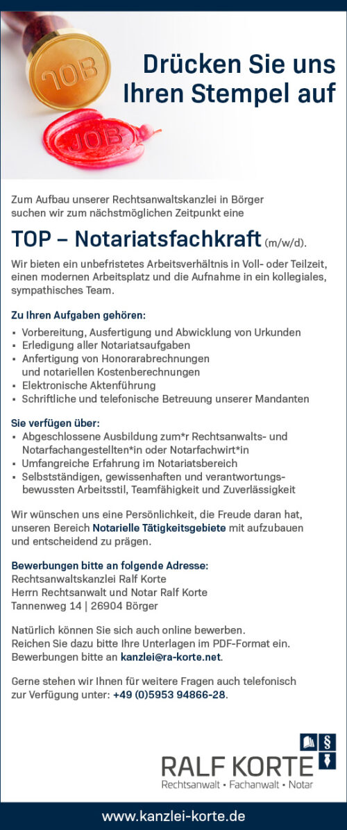 Herrn Rechtsanwalt und Notar Ralf Korte